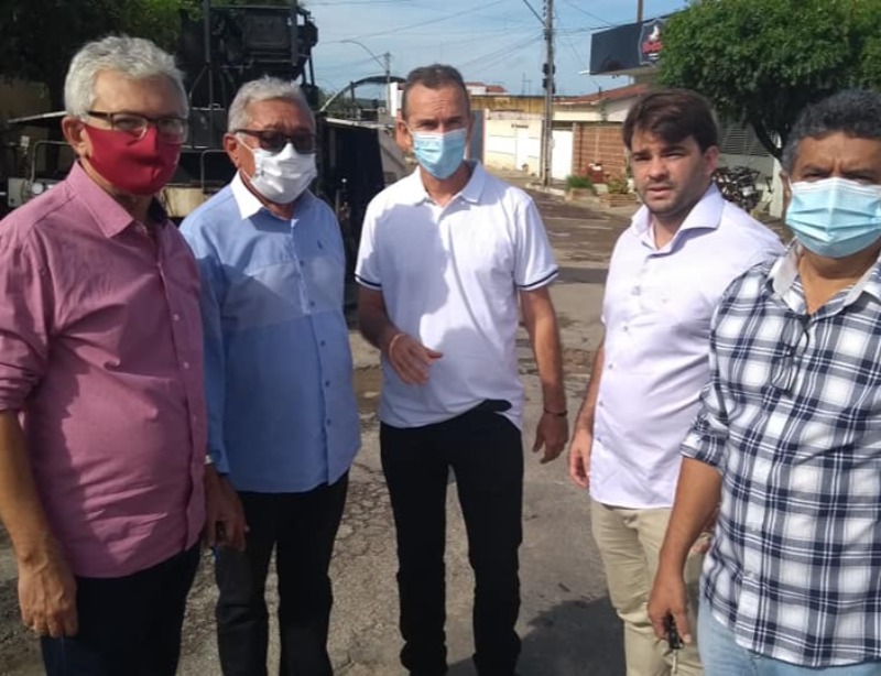 Prefeito Samuel Lacerda acompanhado do vice Prefeito Raimundo Araújo e do ex prefeito Nilson Lacerda, o Presidente da Câmara Municipal vereador Fidelis de Doca, vereadores Secretários e Coordenadores, esteve verificando o início da pavimentação asfáltica da Rua Prefeito João Fausto, obra construída em parceria Governo do Estado e Prefeitura Municipal de Conceição.