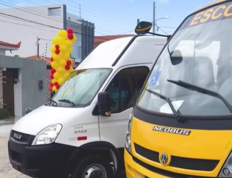 A entrega dos novos veículos foi realizada na área defronte a Escola Municipal Raimunda Leite Sobrinha. O momento foi acompanhado pelo diretor da escola, José Alves, e a secretária de Educação, Telma Regina, e a sub-secretária Maria das Neves.
