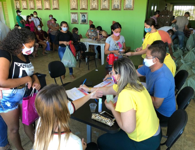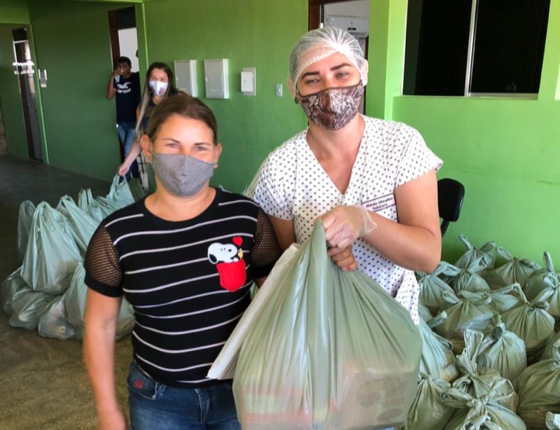 Pais e responsáveis são orientados a não fazer aglomeração e usarem máscaras, principalmente na hora de buscar os kits. Na próxima segunda-feira (29), será a vez dos alunos da Escola Municipal Raimunda Leite Sobrinha de receberem os seus kits.